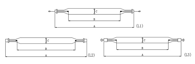 序號 | 圖號 | 功率 | 工件電壓(V) | 工作電流(A) | 全長A | 極距B | 管徑C | 功率密度(W/mm) | 備注 |