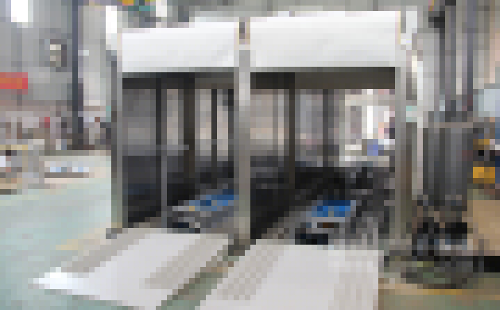 2、外形尺寸:寬4700*高2850*深13900mm,箱體內(nèi)可同時平排進三臺推車,烘烤時間可獨立設(shè)置(見附圖);上料區(qū)長1500mm,設(shè)有上料斜坡,便于推車進入緩沖區(qū);兩端緩沖區(qū)各長1700mm,各設(shè)有升降平臺,便于推車進出烘烤,爐蓋上加裝0.75KW高溫抽風風機;烘干區(qū)長7620mm,烘干區(qū)前后裝有隔熱卷閘門,加裝感應(yīng)器,底部設(shè)有傳送鏈條;下料區(qū)長1500mm, 加裝斜坡 ,以便推車出料。